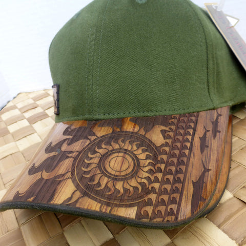 Koa Wood Green Hat w/ Island Chain Wood Stamp & Sunburst Rim