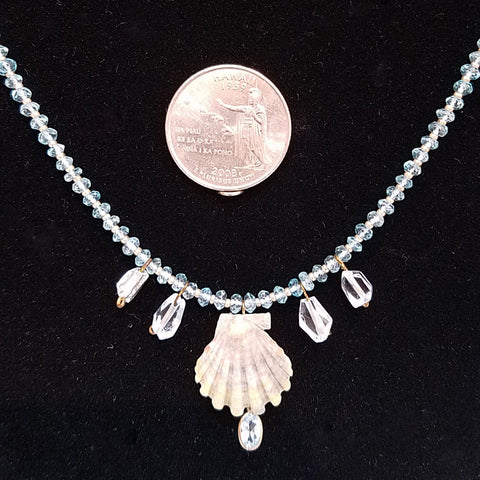 This Kaua'i Sunrise Shell is paired with aquamarine drops and gem.