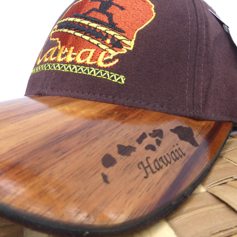 Koa Wood Brown Kauai Island Hat w/ Island Chain Rim